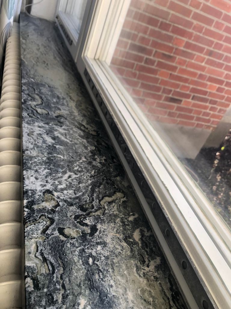En trevlig detalj som visar på hög kvalité i detaljval är fönsterbänkarna i Kolmårdsmarmor.
