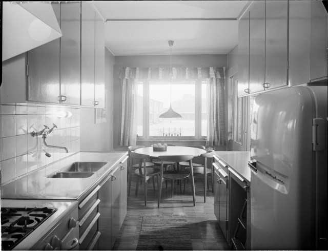Den ursprungliga köksplaneringen var för 50-talet modern med hög maskinell standard som kylskåp.