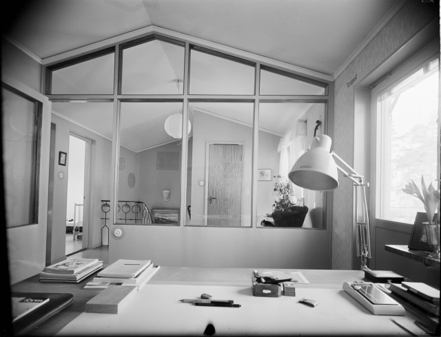 Planlösningen för övervåningen är ritad för att kunna vara flexibel. Garderoben mellan sovrum 1 och 2 kan byggas om till genomgång och icke bärande väggar kan ändras för att justera planlösningen efter behov. En fin tidstypisk byggnadsdetalj är glasväggen mellan hall och sovrum 1 som vissa hus (lägenheterna 6,8,10,25) ursprungligen utrustades med.